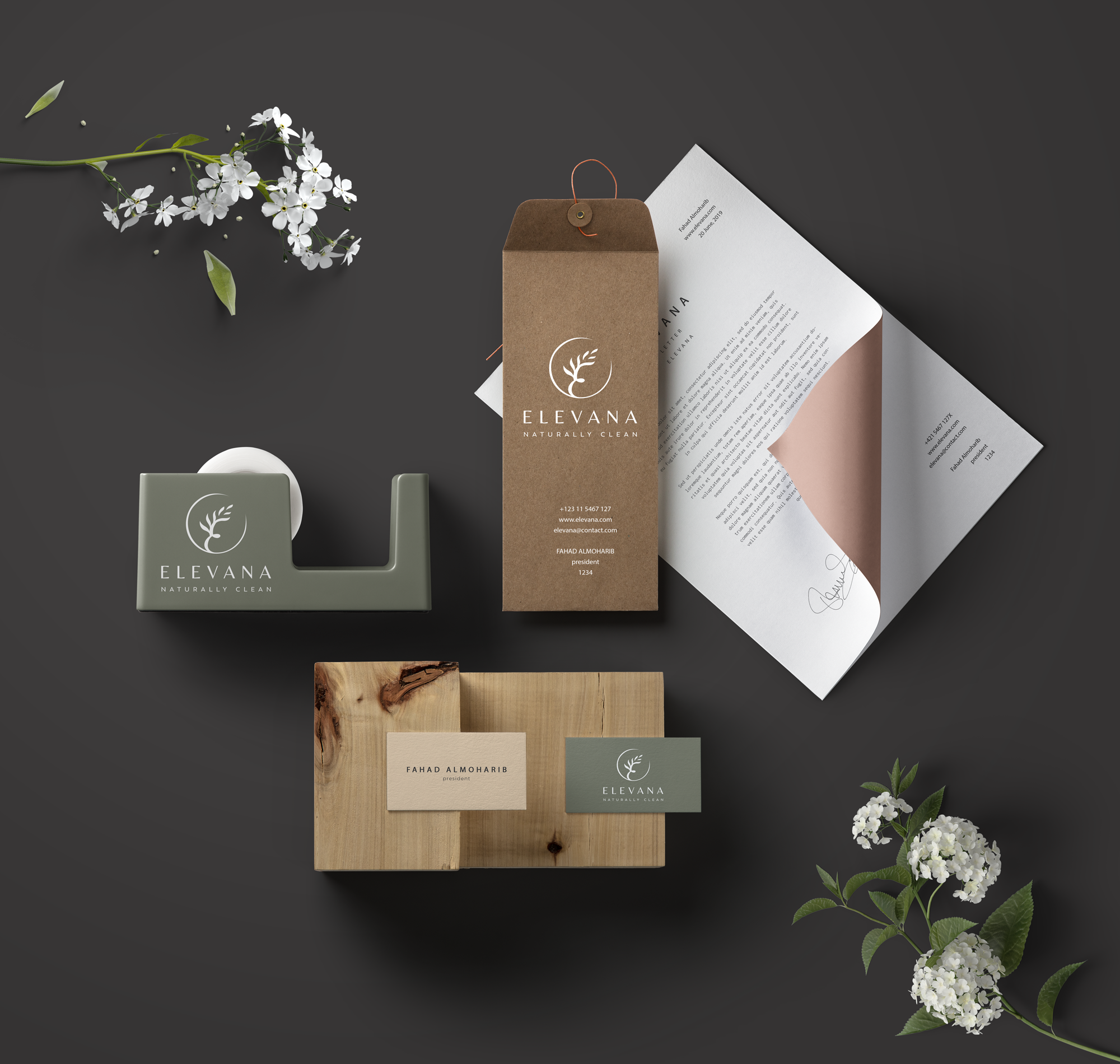 Logo and brand identitiy for Elevana natural cosmetics brand